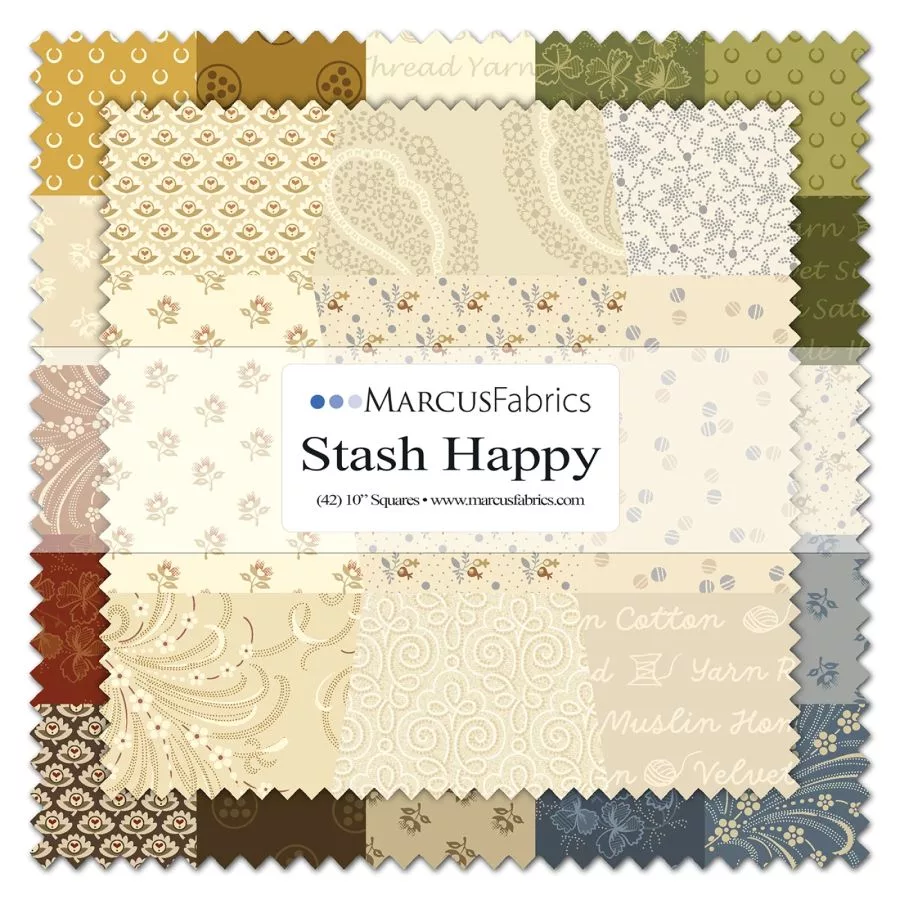 Paquet de 42 carrés de 25 x 25 cm collection Stash Happy de Jennyfer Gaston pour Marcus Fabrics.