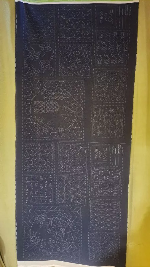 Panneau prêt à broder en Sashiko; le panneau mesure 60 x 140 cm.