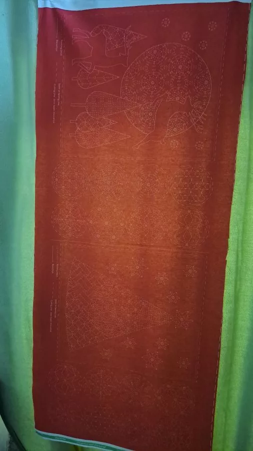 Panneau prêt à broder en Sashiko; le panneau mesure 60 x 140 cm.